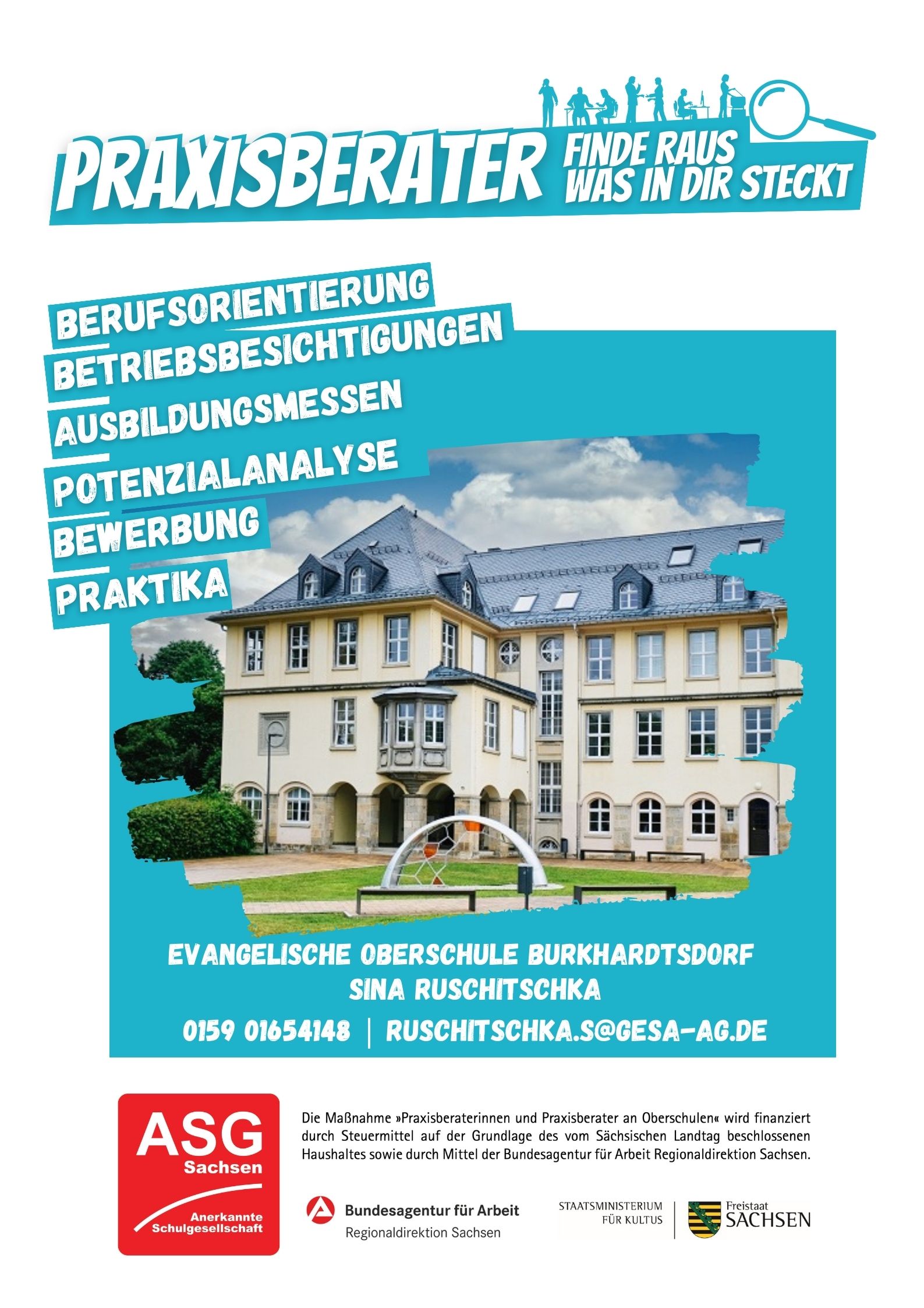 Seit 2014 setzt das Sächsischen Staatsministeriums für Kultus in Zusammenarbeit mit der Regionaldirektion Sachsen der Agentur für Arbeit das Projekt "Praxisberaterinnen und Praxisberater an Oberschulen" um. Es unterstützt die Oberschulen bei der gelingenden Ausgestaltung ihres gesetzlichen Auftrags einer qualifizierten beruflichen Orientierung.